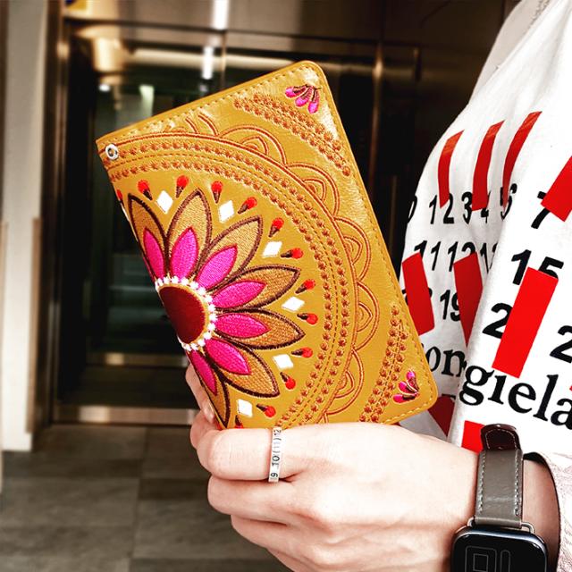 エスニック 刺繍 手帳型ケース(内側:黒TPU ケース)