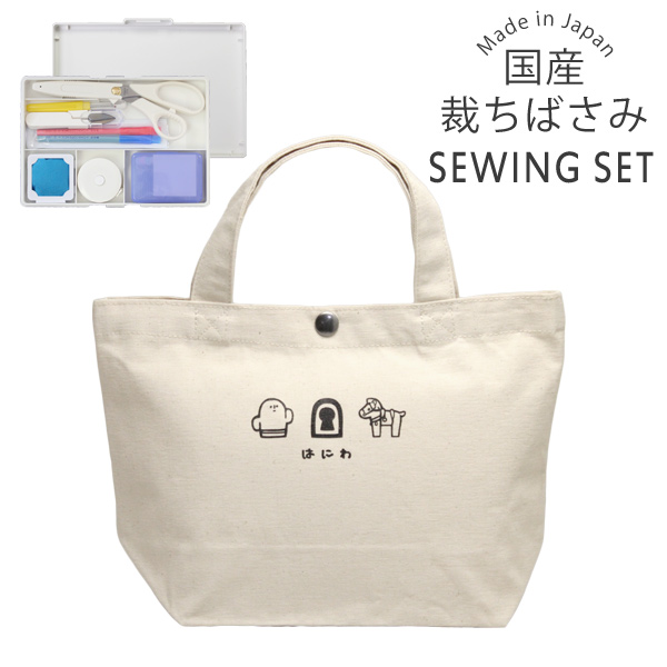 裁縫セット 小学生 大人 男 男の子 女の子 男女兼用 ソーイングセット 国産裁ちばさみ トートバッグ はにわ