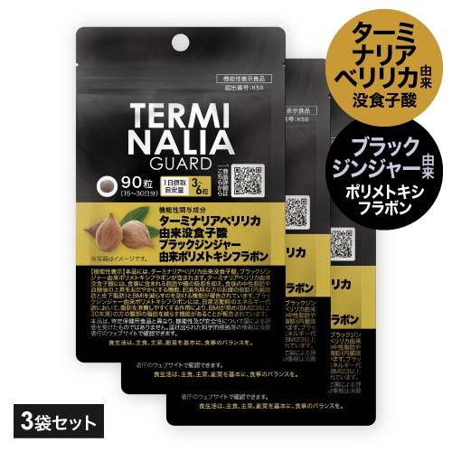 【新発売 SALE 12/11まで】 ターミナリアベリリカ 由来 没食子酸 ブラックジンジャー 由来 ポリメトキシフラボン 食事の糖と脂肪をWケア 人気 ダイエット サポート 成分 配合 サプリ サプリメント 医師監修 機能性表示食品 ターミナリアガード 90粒 3袋セット メール便