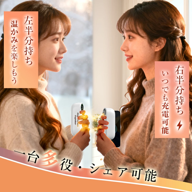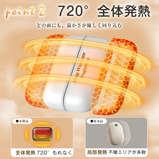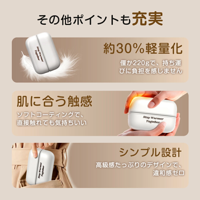 両手を同時に温めることができ、手のひら全体がじんわりぽかぽか。