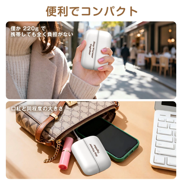 電気カイロとしてだけでなく、モバイルバッテリー機能付きでスマホ充電も可能。