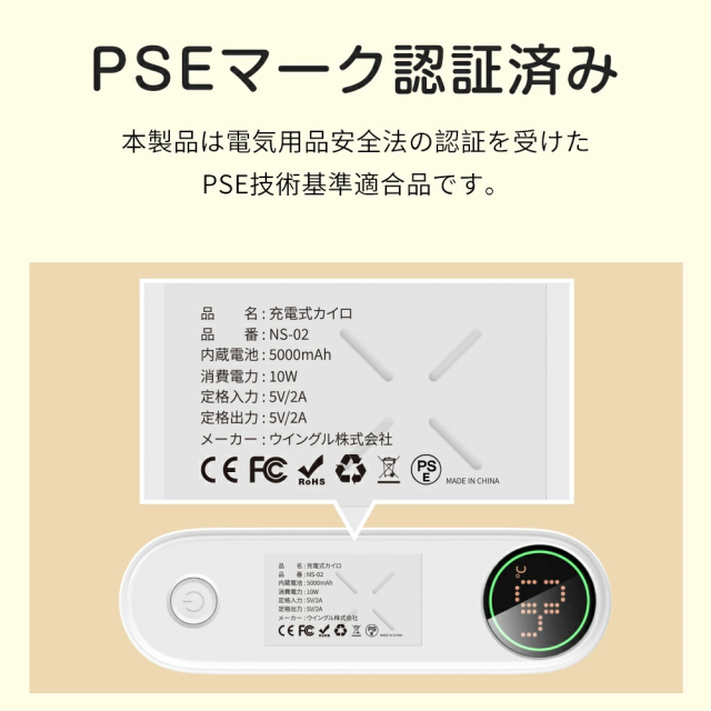 機能:モバイルバッテリー機能付き/マグネット分離式/LED温度表示