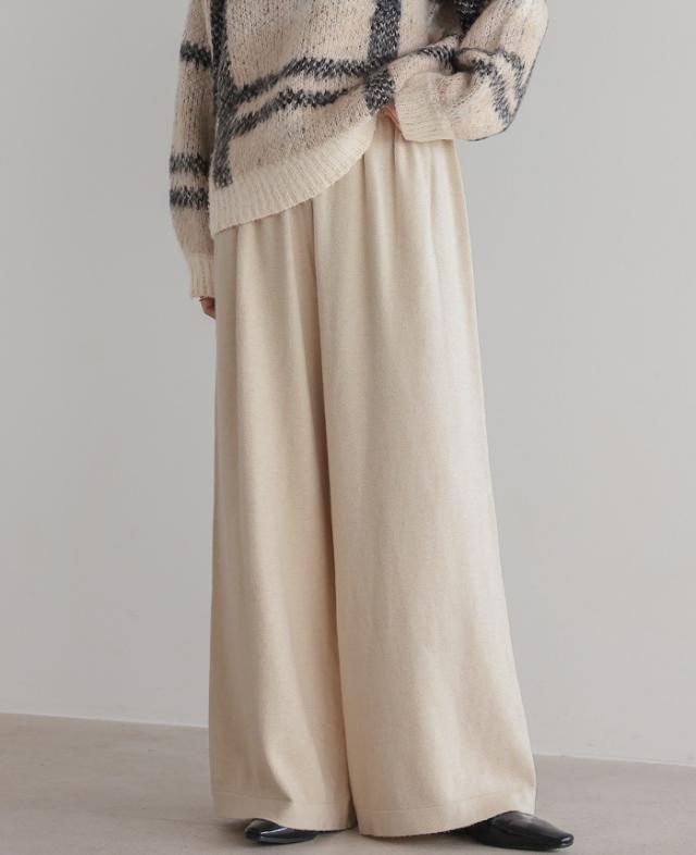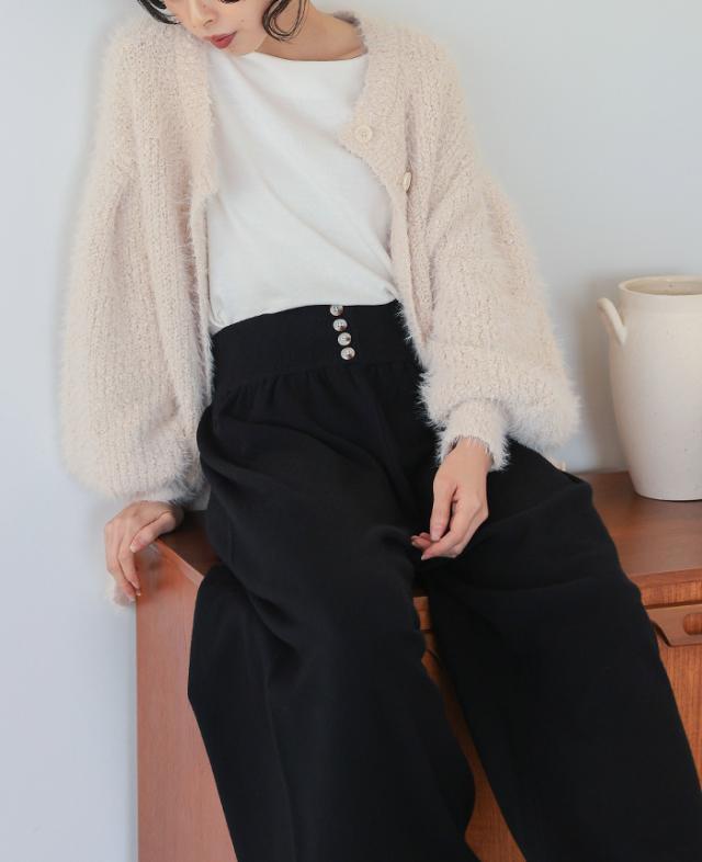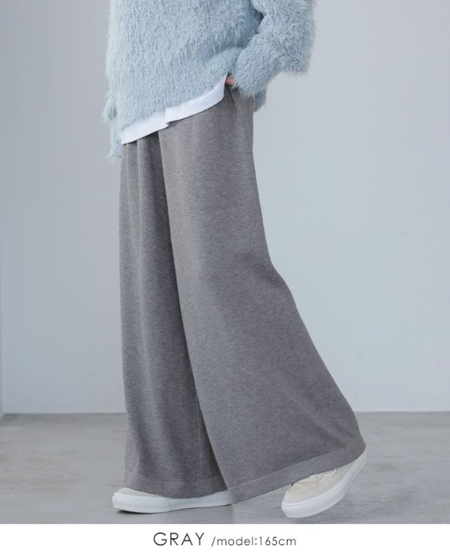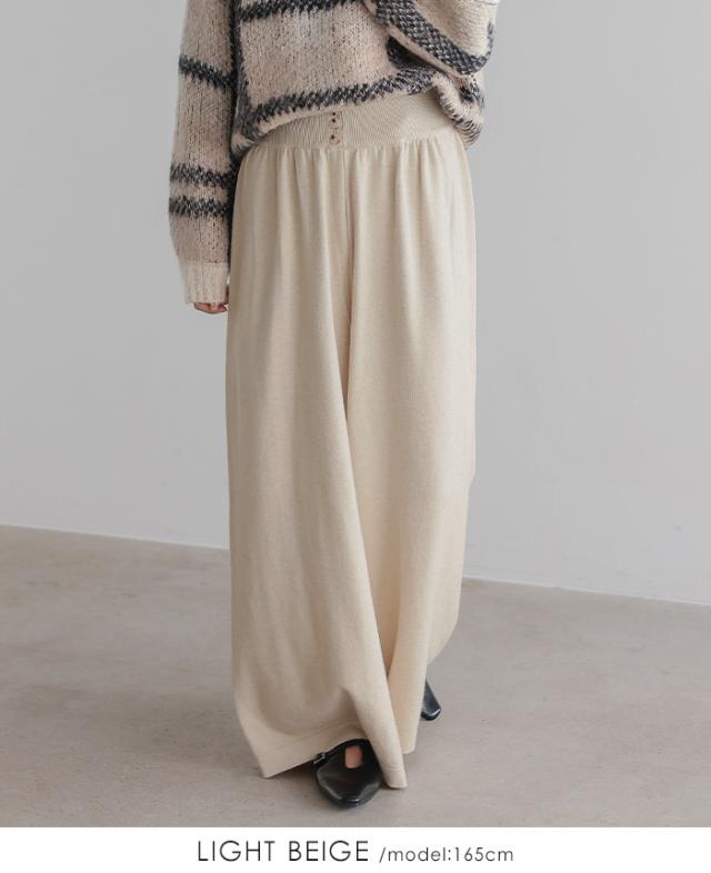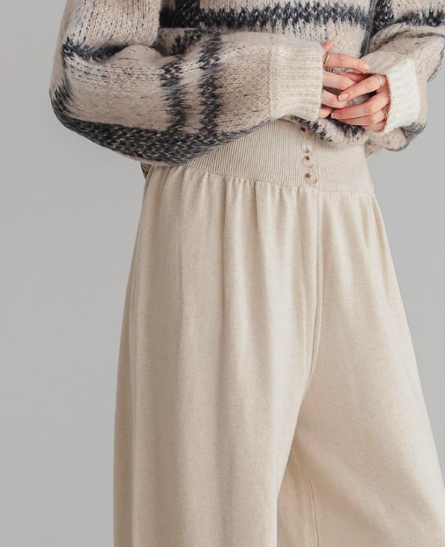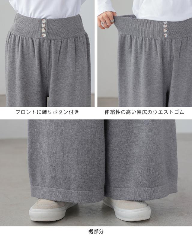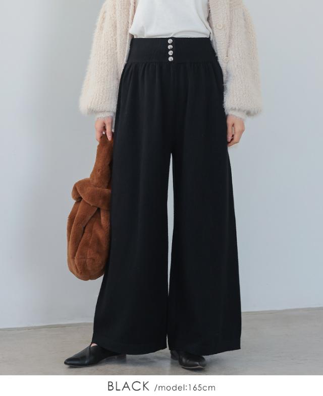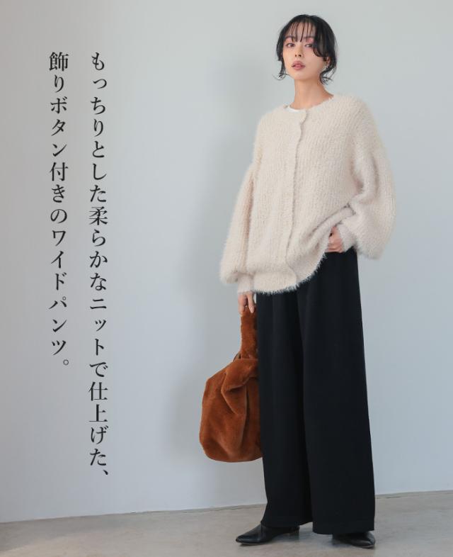 [新作限定P10%×送料無料]飾りボタンニットワイドパンツ あったか レディース ボトムス ズボン 体型カバー 冬新作【メール便不可】