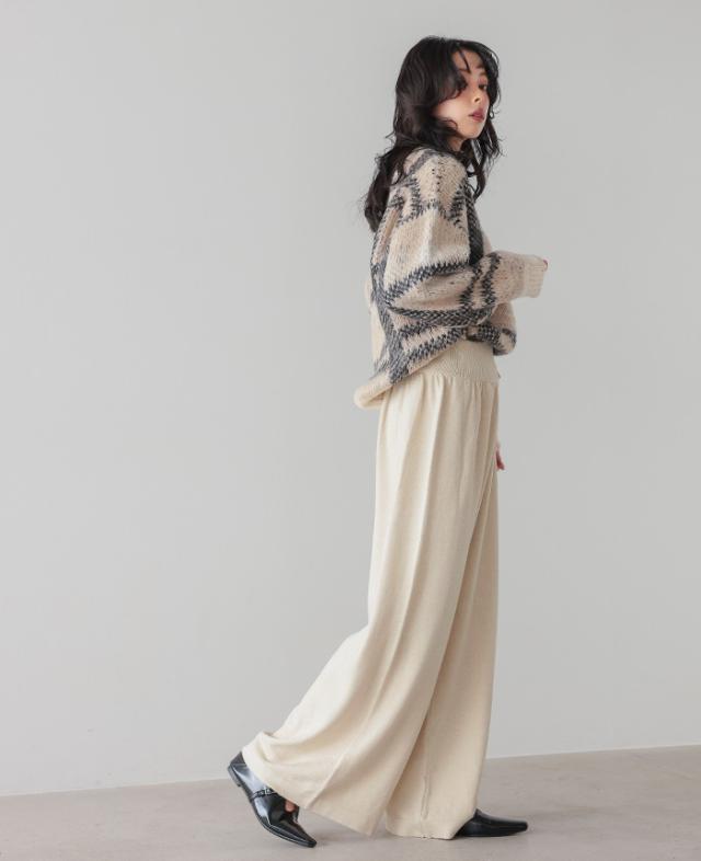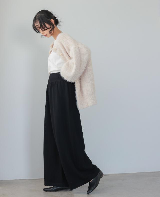 ![]() ![]() ![]() ![]() ![]() ![]() ![]() ![]() ![]() ![]() ![]() ![]() ![]() ![]() ![]() ![]() ![]() ![]() ![]() ![]() ![]() ■Comment もっちりとした柔らかなニットで仕上げたワイドパンツ。 脚のラインを拾わず、ストレスフリーな穿き心地。 ウエストは幅広の総ゴムで、ウエスト周りがスッキリ。 センターには飾りボタンを付け、デザインのアクセントに。 きれいめコーデに活躍してくれる、1枚は持っておきたいアイテムです。 ■Size(cm) 【M】:総丈99(ウエスト幅8) ウエスト66-120 ヒップ116 股上38/43 股下65 わたり幅36 裾回り69 ■Fabric レーヨン50% ナイロン30% ポリエステル20% 生地感:もっちりとした、非常に柔らかなニット 裏地:なし 伸縮性:あり 透け感:淡色は少しあり 生地の厚さ:標準 ■Weight 約592g ■Color ブラック(標準的な黒) ライトベージュ(くすんだ薄いベージュ) グレー(少し暗めの杢グレー) なし ■Country of origin 中国 ■洗濯表示