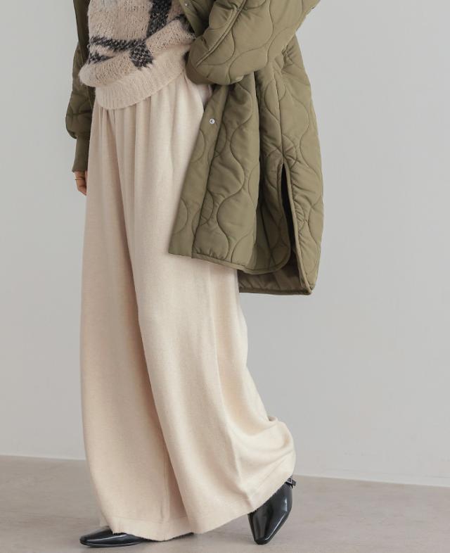 ■Attention ※ご覧になるモニターや環境により実際の商品と色味が異なる場合がございます。予めご了承ください。 ※実寸サイズは平置きメジャー採寸のため若干の誤差が生じる場合がございます。 ※お取り扱い・お洗濯につきましては、付属の商品タグをご使用前に必ずご確認下さい。 ※濃色の商品は色落ち・移染する可能性がございますので、お取り扱いにはご注意下さい。 ※繊維製品のため、同じ商品であっても生産時期やカラーによって伸縮率・生地感・色味が多少異なる場合がございます。特にニット製品に関してはプレス・洗い加工等で5cm前後の誤差が生じる場合がございます。 これらは品質上問題はございません。予めご了承下さい。 ■Staff comment AI/身長:154cm(普段のサイズ:M-L) 体型:骨格ストレート 全体的に厚みのある、産後体型。 トップスはMサイズを選ぶ。 ウエストと腰回りが大きく、ボトムはLサイズを選ぶこともあります。 【総丈】8cm折ってフルレングス丈。 【ウエスト】丁度良い。 【ヒップ】丁度良い。 【一言コメント】 私には少し丈が長めですが、ヒールのあるブーツに合わせたいと思います。 AYA/身長:158cm(普段のサイズ:M) 体型:骨格ウェーブ 上半身筋肉質の標準体型。肩幅は広くバストは平均。 ウエストは細くヒップが大きいので、 ヒップに合わせてボトムは選びます。 【総丈】床につく。 【ウエスト】程良くゆったり。 【ヒップ】ゆったり。 【一言コメント】 柔らかなニットで、気持ちいい肌触りです。 RISA/身長:165cm(普段のサイズ:L-LL) 体型:骨格ナチュラル 体に厚みがあるやや痩せ型。 バスト・ウエスト・ヒップは標準ですが、 肩幅が広くて腕が長め、ふくらはぎは筋肉質。 身長が高いため普段Lサイズを選びます。 【総丈】くるぶし下3cm。 【ウエスト】丁度良い。 【ヒップ】丁度良い。 【一言コメント】 ニットなので動きやすく、ストレスフリーな穿き心地です。 |