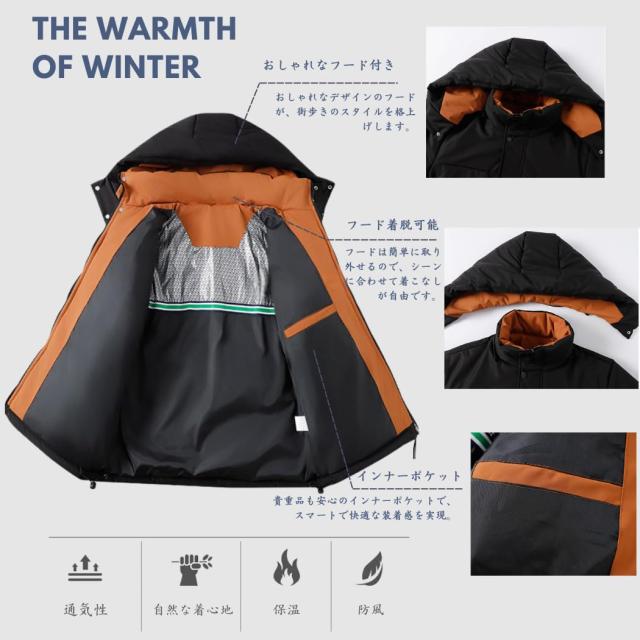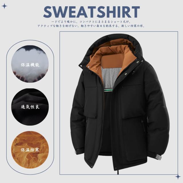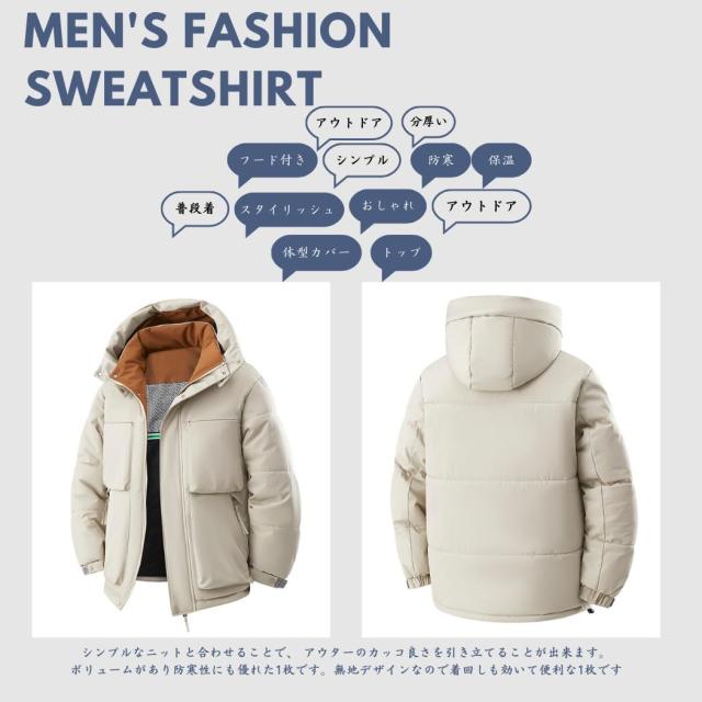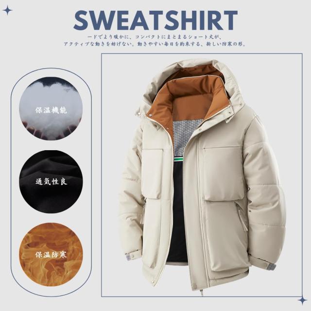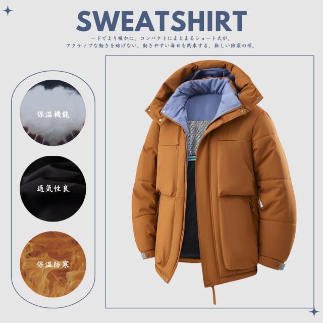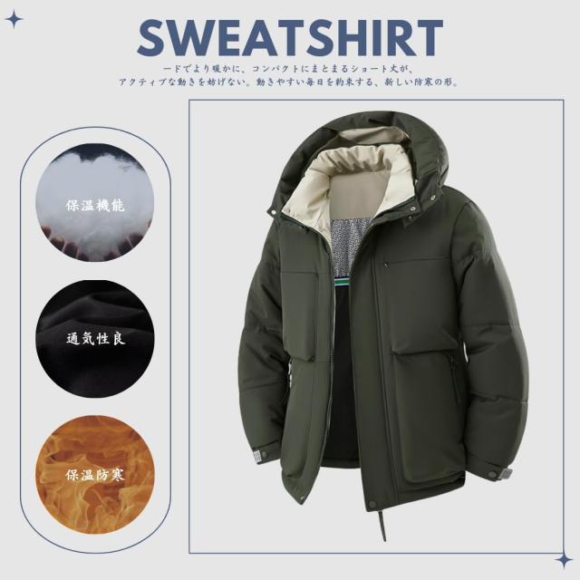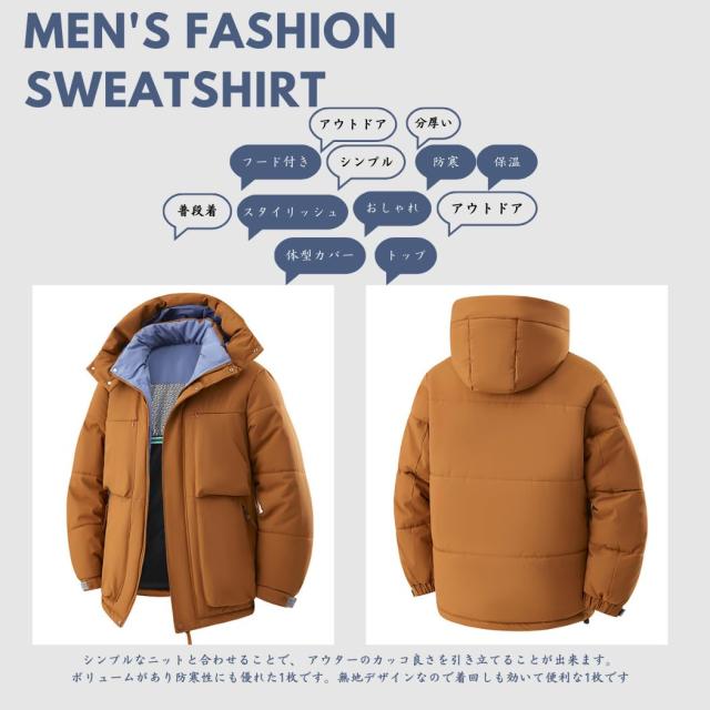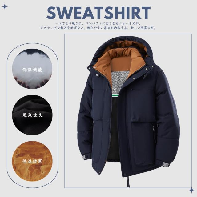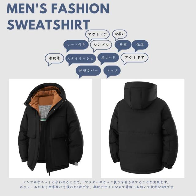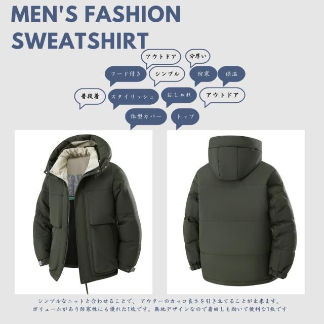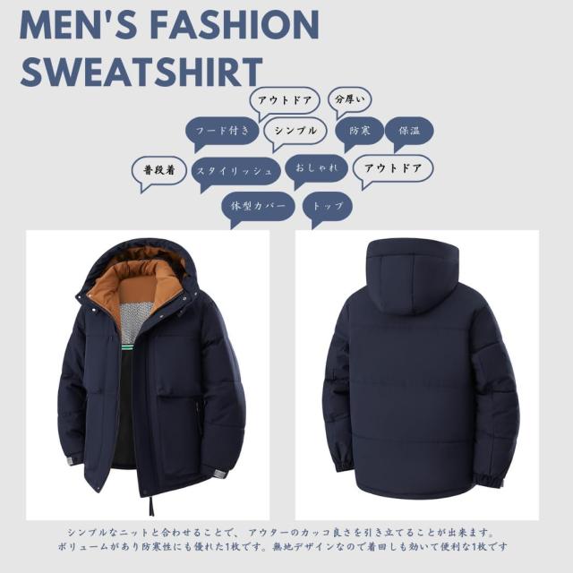 コート メンズ 冬服 ベンチコート ダウンジャケット ショートダウン 分厚い 中綿ジャケット フード付き 保温 防寒 アウトドア おしゃれ スタイリッシュ 体型カバー シンプル オフィス 普段着 トップ