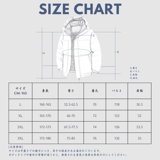【3XL=日本2XL】推奨体重:75-85kg 身長の目安:175-180cm