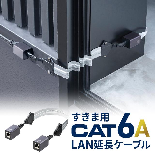 すきま用LANケーブル カテゴリ6A 44cm 両面テープ 木ネジ 取付 窓 ドア フラットケーブル[500-LAN6A-FLFF]