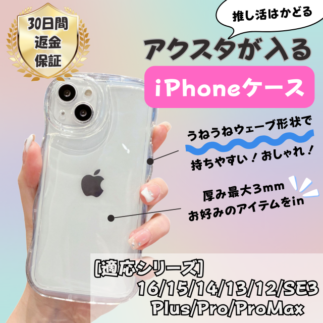 アクスタが入るスマホケース iPhoneケース クリア ウェーブ うねうね アクスタ収納 アクスタケース 推し活 シャカシャカ iphone17 16 15 14 13 12 SE3 plus pro max
