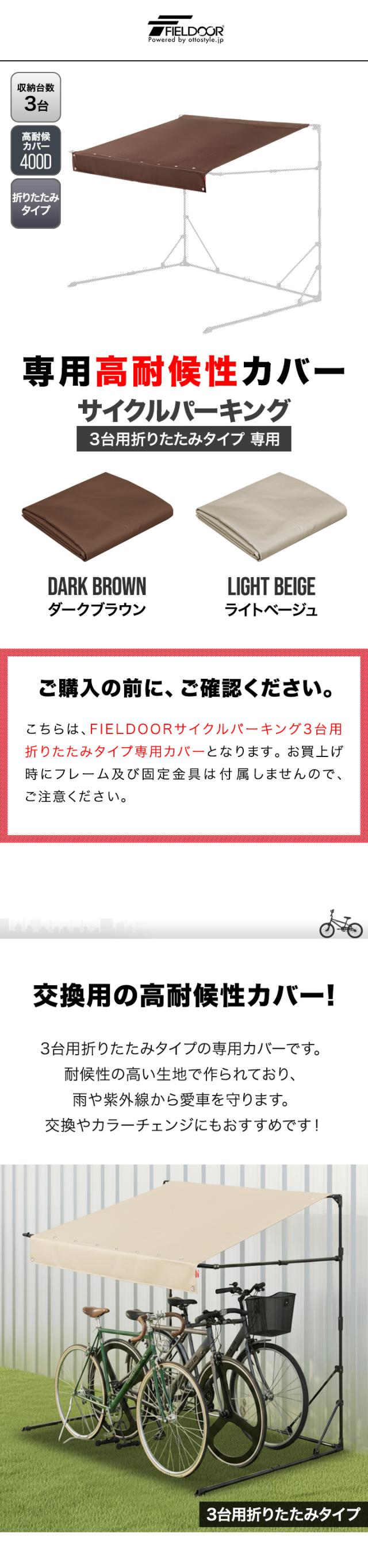 FIELDOOR サイクルパーキング 折りたたみタイプ 専用カバー 3台用/奥行134cmタイプ 高耐候性 400D生地 自転車置き場 屋根 交換用カバー 替えカバー 交換用 交換部品 UVカット 耐水 サイクルガレージ 自転車 バイク サイクルポート 1年保証 送料無料