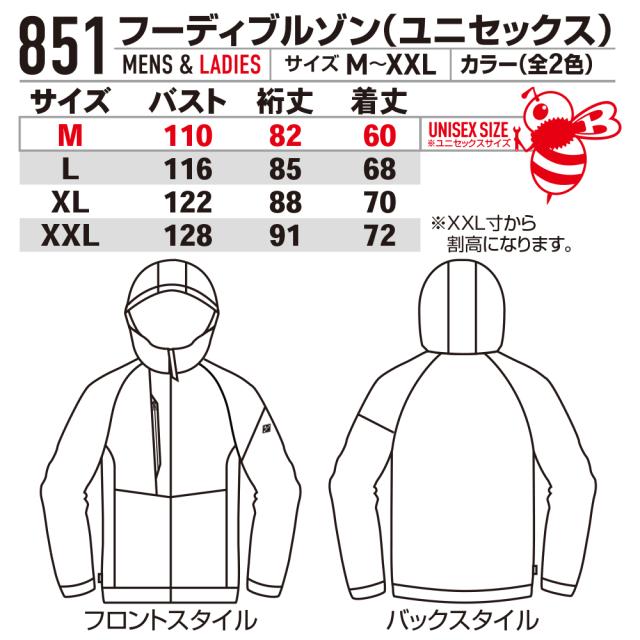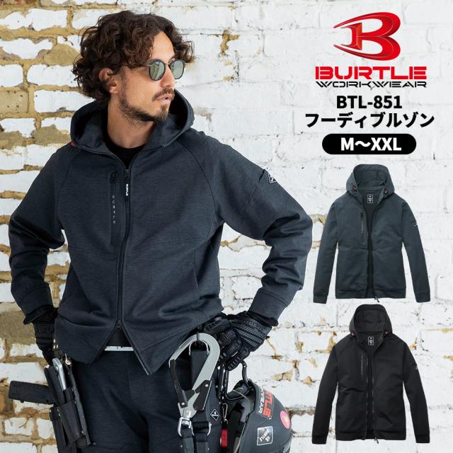BURTLE バートル 851 フーディブルゾン 25-26秋冬 ユニセックス ストレッチ ダブルジップ 長袖 防寒着 軽量 作業服 作業着 スポーツ アウトドア 宅配のみ