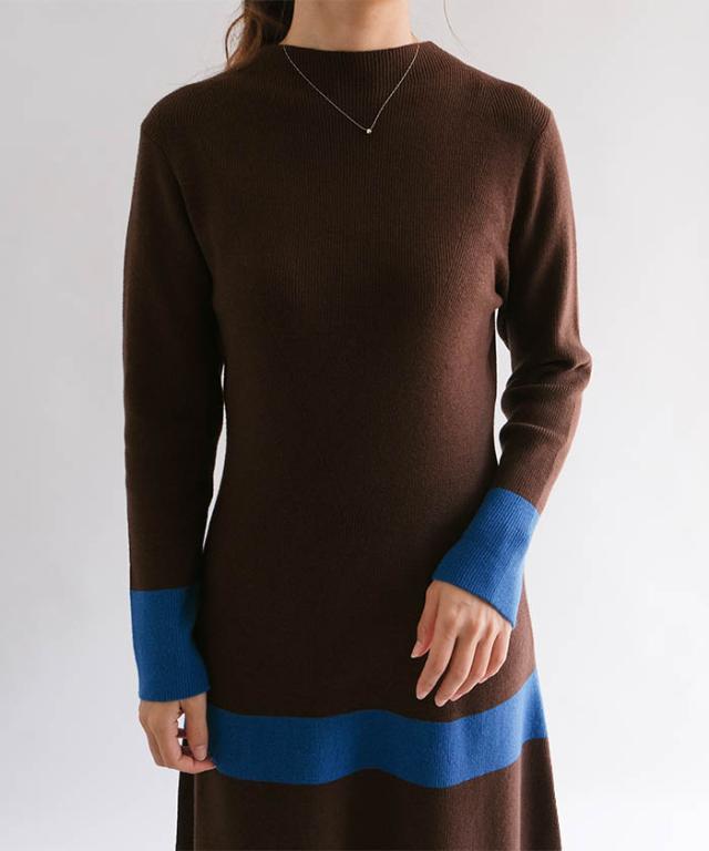 やわらかく広がるAラインシルエットが、女性らしい抜け感をつくるニットワンピース。