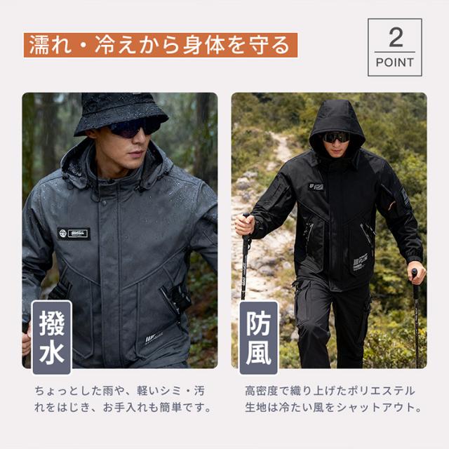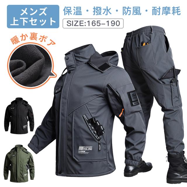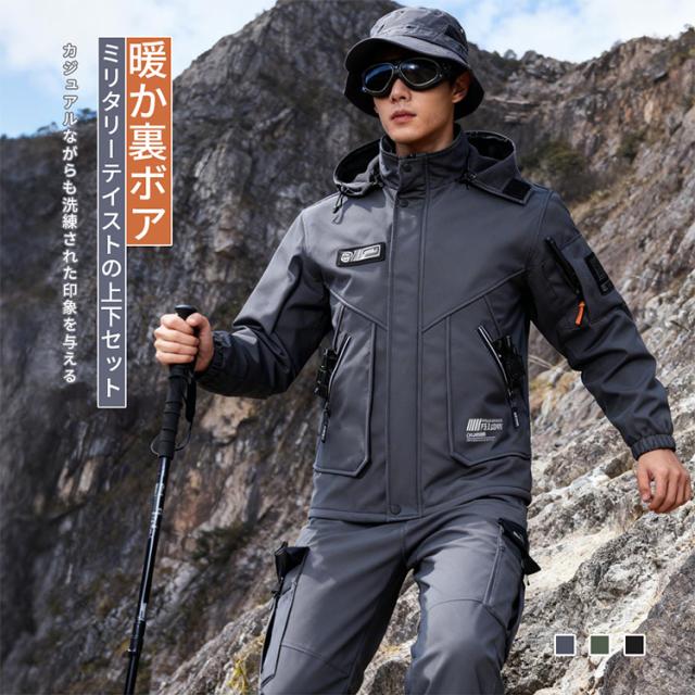 【上下セット 裏起毛 】登山ジャケット コート メンズ 冬服 アウトドアジャケット 防寒 防風 耐久撥水 人気 かっこいい クール おしゃれ 体型カバー スキー ウォーキングウェア 釣り