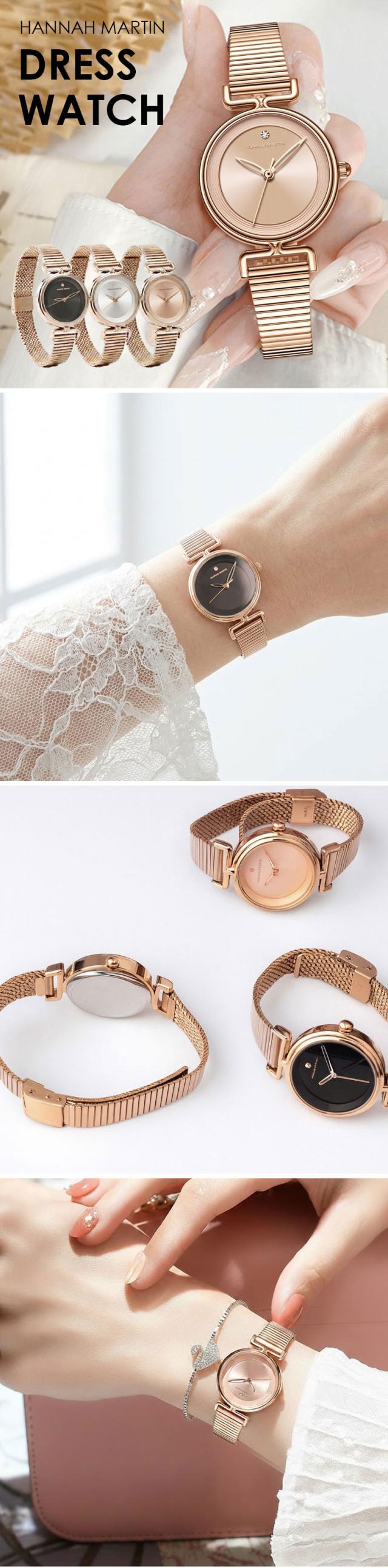 腕時計 レディース おしゃれ ブランド ハンナマーティン 高級感 ステンレスバンド 薄型 ミニマル かわいい 上品 防水 シンプル 女性 ギフト 人気 仕事 きれいめ コーデ アクセサリー フォーマル オフィス 彼女 プレゼント