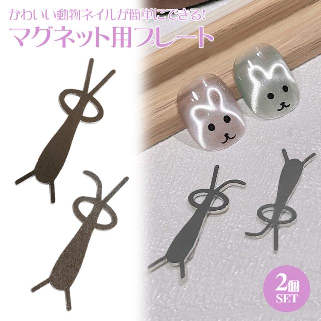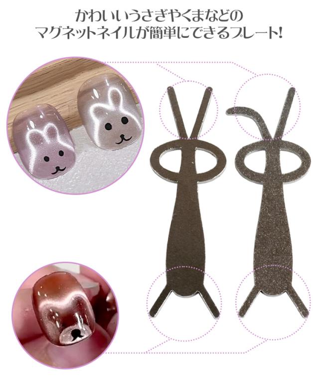 マグネットネイル プレートのみ 2個セット ネイルツール うさぎ 折れ耳 垂れ耳 くま セルフネイル ジェルネイル アニマルネイル マグネットツール
