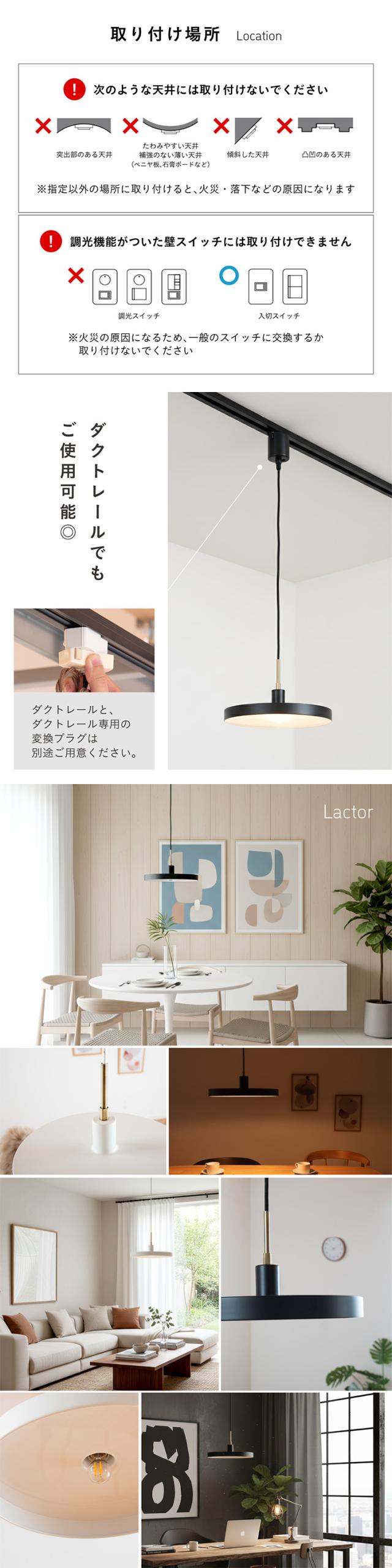 ペンダントライト シーリングライト 天井照明 おしゃれ 北欧 1灯 LED電球専用 Lactor(ラクター) 2色対応 照明器具 吊り下げ灯 ダクトレール インテリア カフェ風 キッチン 食卓 ダイニング シンプル