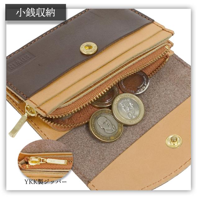 エドウイン EDWIN 22269331 財布 サイフ 日本製 ミニ財布 小型 折財布 メンズ レディース 本革 牛革 栃木レザー 箱付き 小銭収納 カード収納 プレゼント ギフト