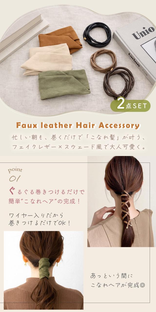 【MILASIC公式】 ワイヤーポニー 2個セット ヘアリボン スウェード風 ワイヤー入り フェイクレザー ヘアアクセサリ こなれ髪 大人可愛い ぐるぐる 巻きつけ シンプル ヘアアレンジ ヘアゴム フェミニン レディース 大人カジュアル オフィス 結婚式 パーティ コーデ
