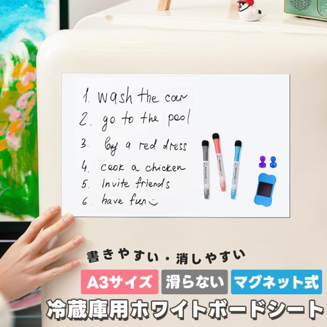 冷蔵庫用ホワイトボードシート マグネットシート A3サイズ 磁気ホワイトボード メニューボード 掲示板 メッセージ 覚書 貼ってはがせる