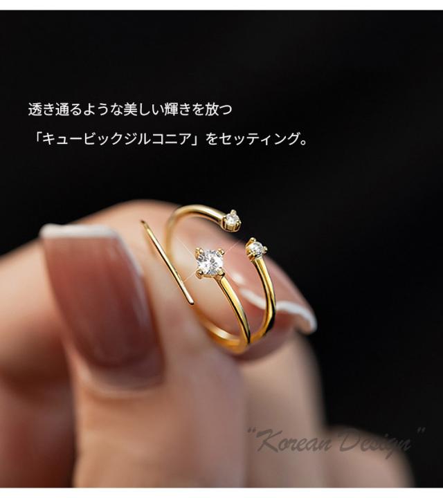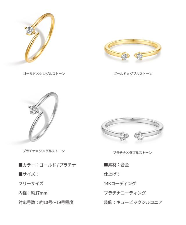 指輪 フリーサイズ リング レディース 一粒 ダブル 2粒 ストーン 14K コーディング 華奢 細い 極細 10号 19号 シンプル 重ね付け おしゃれ 大人可愛い 上品 きれいめ オフィス ゴールド プラチナ 金属アレルギー対応 プレゼント 送料無料
