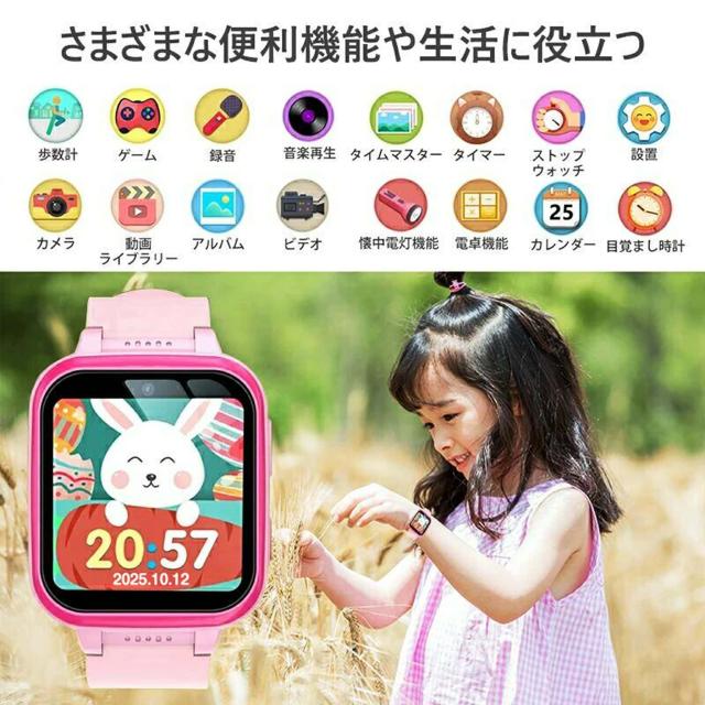 | 商品名 | スマートウォッチ 腕時計 知育玩具 カメラ 自撮り 録画録音 ゲーム 音楽 アラーム 歩数計 多機能 おもちゃ キッズ腕時計 |