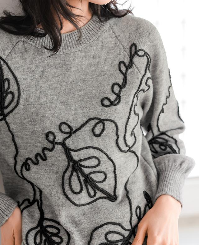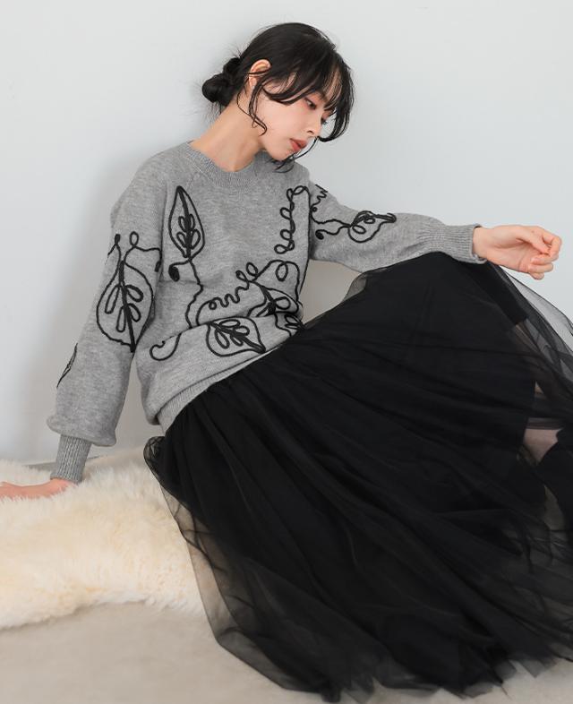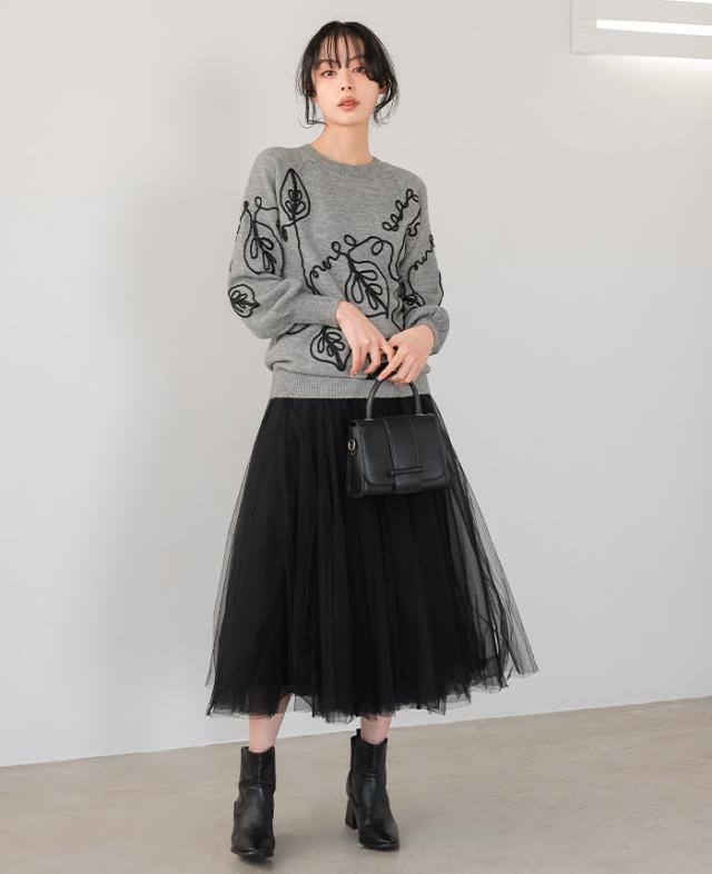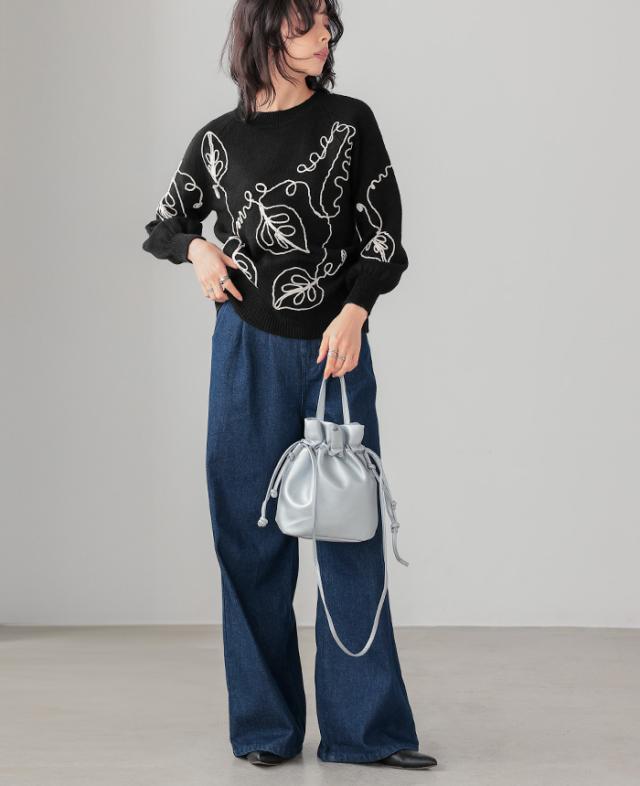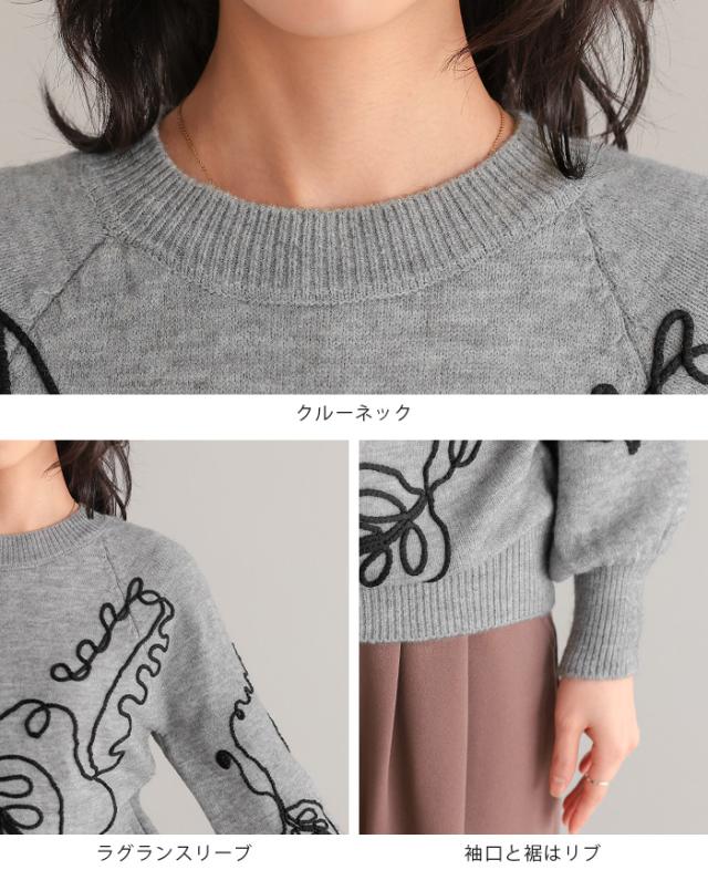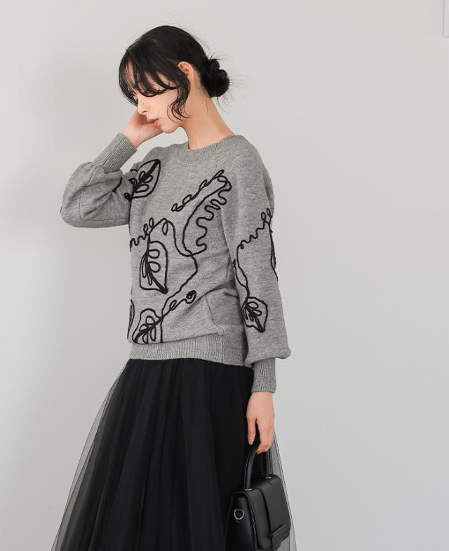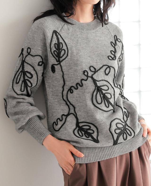 ![]() ![]() ![]() ![]() ![]() ![]() ![]() ![]() ![]() ![]() ![]() ![]() ![]() ![]() ![]() ![]() ![]() ![]() ![]() ![]() ![]() ■Comment 紐状のテープでリーフを象った、華やかなコード刺繍ニット。 ラグランスリーブで肩まわりをスッキリさせ、肩幅を華奢に見せてくれます。 袖は少しボリュームを出し、袖口のリブで引き締めたパフスリーブ。 起毛感のある柔らかなニットは、ふわっとした優しい肌触り。 柄編みとは趣きが異なる、大人のきれいめアイテムです。 ■Size(cm) 【M-L】:着丈61 バスト90 裄丈70 袖口16 天幅20 裾周80 ■Fabric アクリル50% ポリエステル30% ナイロン20% 生地感:ふわっとした起毛感のある、柔らかなニット 裏地:なし 伸縮性:あり 透け感:ニット特有の透け感あり 生地の厚さ:普通 ■Weight 約398g ■Color 杢グレー(少し暗めの杢グレー×黒の刺繍) ブラック(標準的な黒×白の刺繍) ■Country of origin 中国 ■洗濯表示