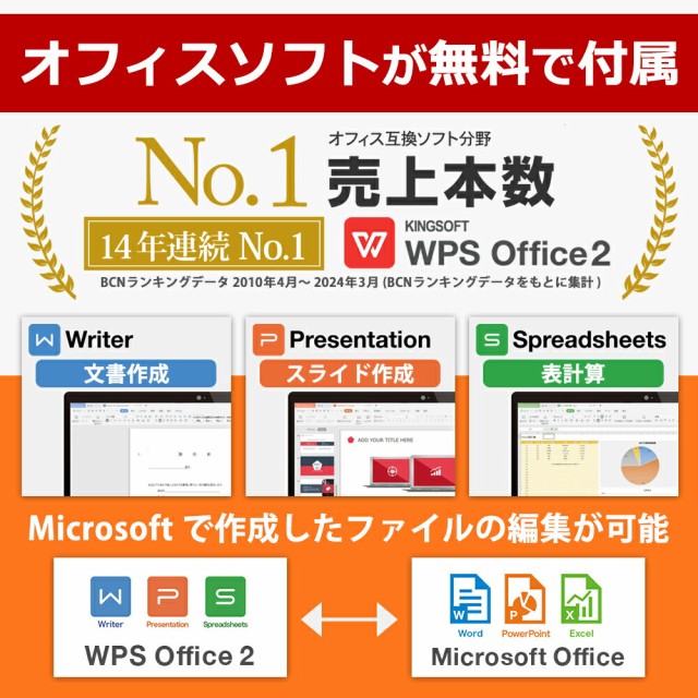 | 付属オフィス | KINGSOFT WPS Office ※同梱のライセンスカードにて認証を行ってください。 |