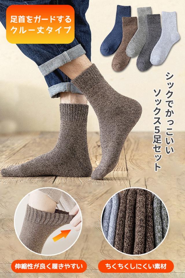 靴下 メンズ あったか靴下 裏起毛 5足セット 暖かい あったかい靴下 メンズ靴下 スキー靴下 セット 防寒 温かい靴下 冬 厚手 おしゃれ ブラウン 紺色 ネイビー 灰色 グレー