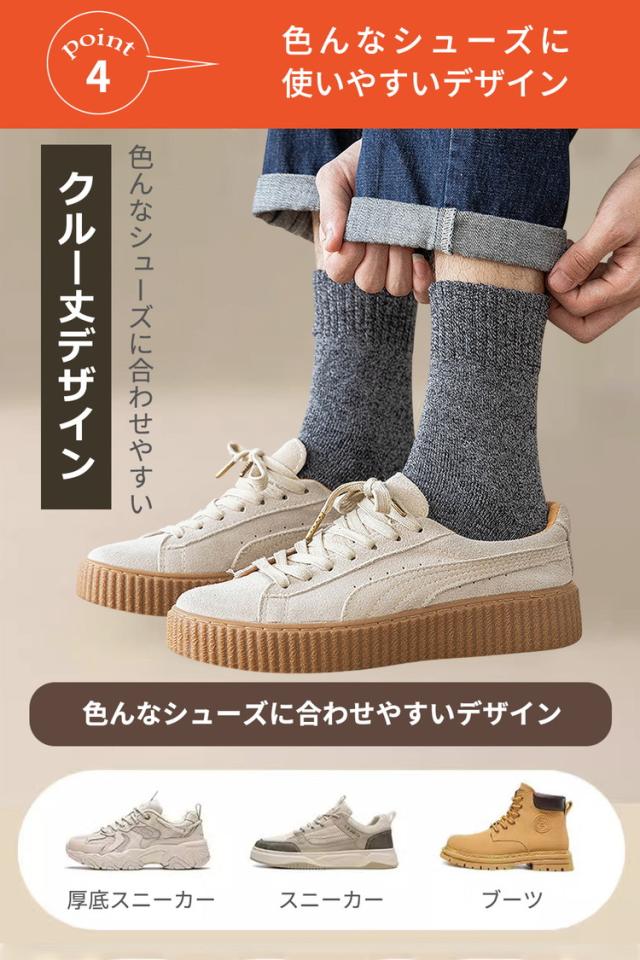 またクルー丈なので、足首周りまで防寒してくれます♪