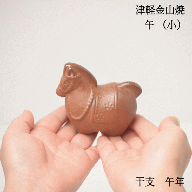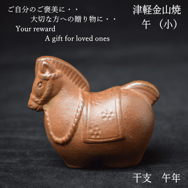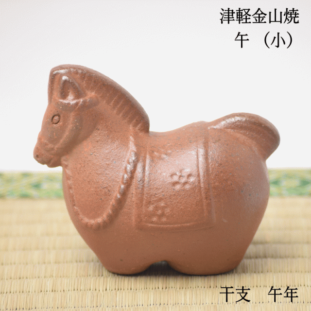 午(小) 午年 うま年 (w4cm-h6.5cm-d7.5cm 61g) 干支 えと 置物 置き物 干支 2026年干支津軽金山焼 焼き締め 和モダン 映え おしゃれ 日本 陶器 父の日