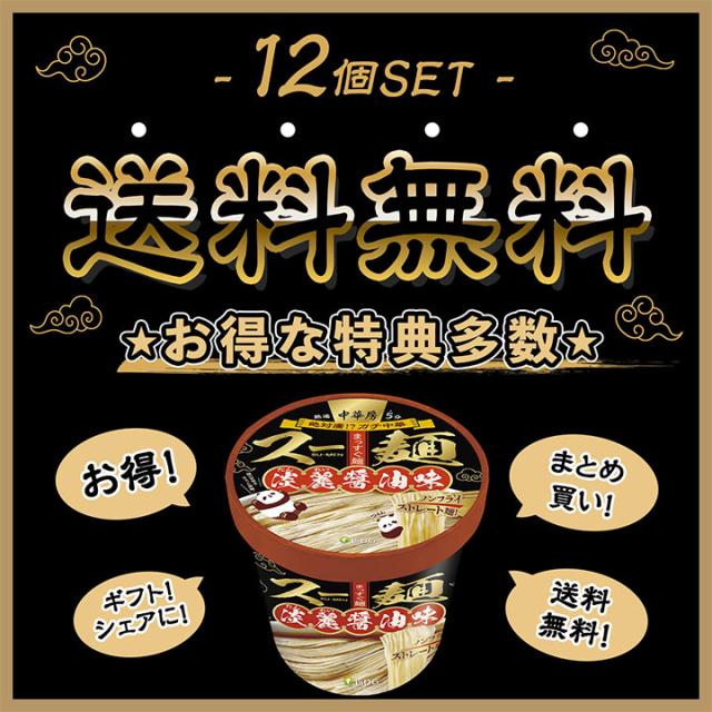 【12個セット】中華房 スー麺 淡麗醤油味 / カップ麺 インスタント麺 ガチ中華 細麺 ストレート麺 醤油スープ 淡麗系 ラーメン 醤油ラーメン 家庭用 簡単調理 具材アレンジ可能 電子レンジ不可 中華料理 本格派