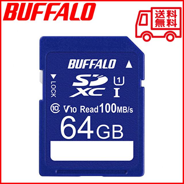 【送料無料】バッファロー SDカード 64GB 100MB/s UHS-1 スピードクラス1 ビデオスピードクラスV10 BUFFALO RSDC-064U11HA/N