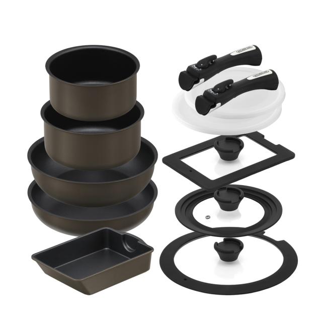 ダイヤモンドコートパン 12点セット ブラウンメタリック MEGI-12S [鍋 フライパンセット IH ガス オーブン 食洗器 アイリスオーヤマ]