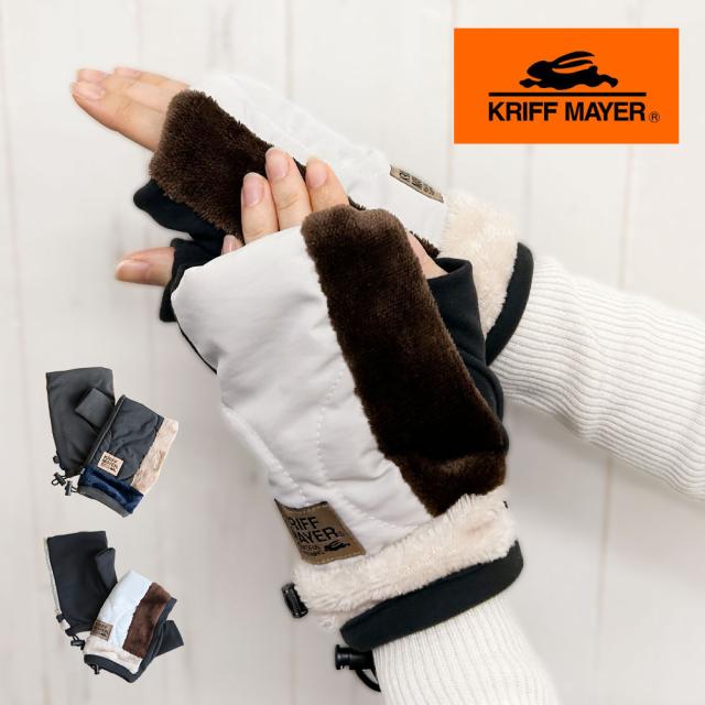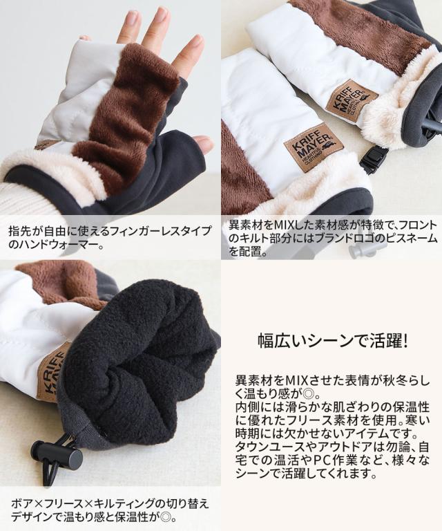 クリフメイヤー ハンドウォーマー レディース 手袋 指なし メンズ PC パソコン 作業 防寒 冬 裏起毛 フリース ボア 暖かい あったか アウトドア レジャー 通勤 通学 おしゃれ 温活 冷え対策 寒さ対策 運転 自転車 スマホ 黒 ブラック アイボリー KRIFF MAYER t1545