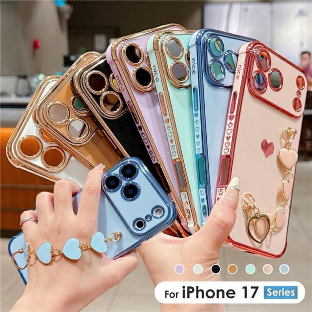 iphone17 ケース 可愛い ハートチェーン付き iphone17pro ケース 耐衝撃 軽量 薄型 iphone17pro maxケース iphone air ケース スマホケース iphone17 iphone17pro ケース iphone17air ケース 背面 バンドベルト ハートチェーン 大人かわいい 韓国っぽ 韓国風 ソフト