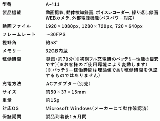 ■ A-411 | フルHD録画対応USBメモリ型カメラ