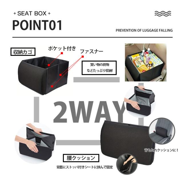 シートボックス 腰当てクッション 車内収納ボックス 大容量 収納 荷物 車 カー用品 落下防止 ボックス カーシート 折りたたみ