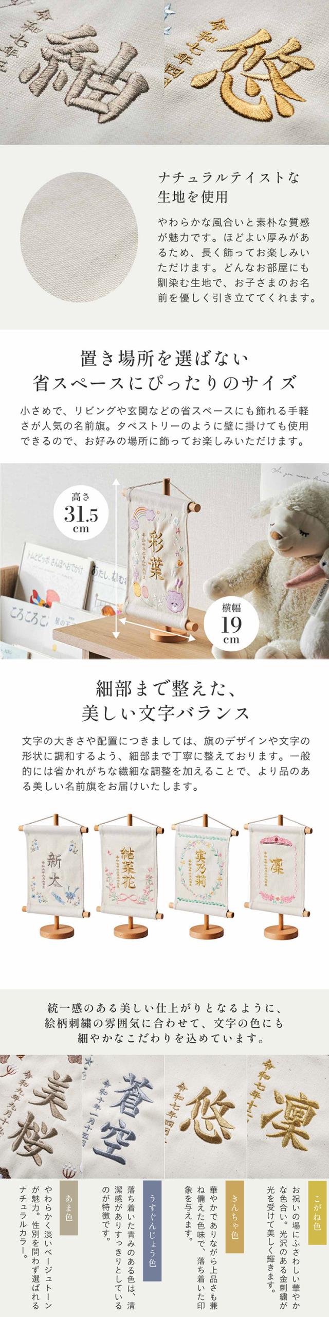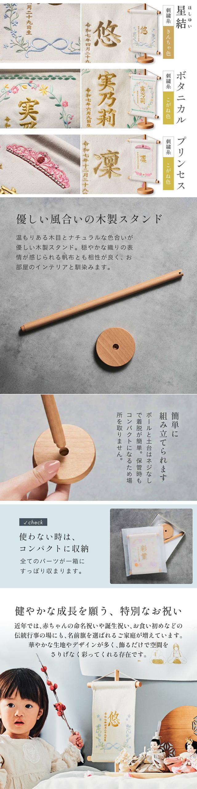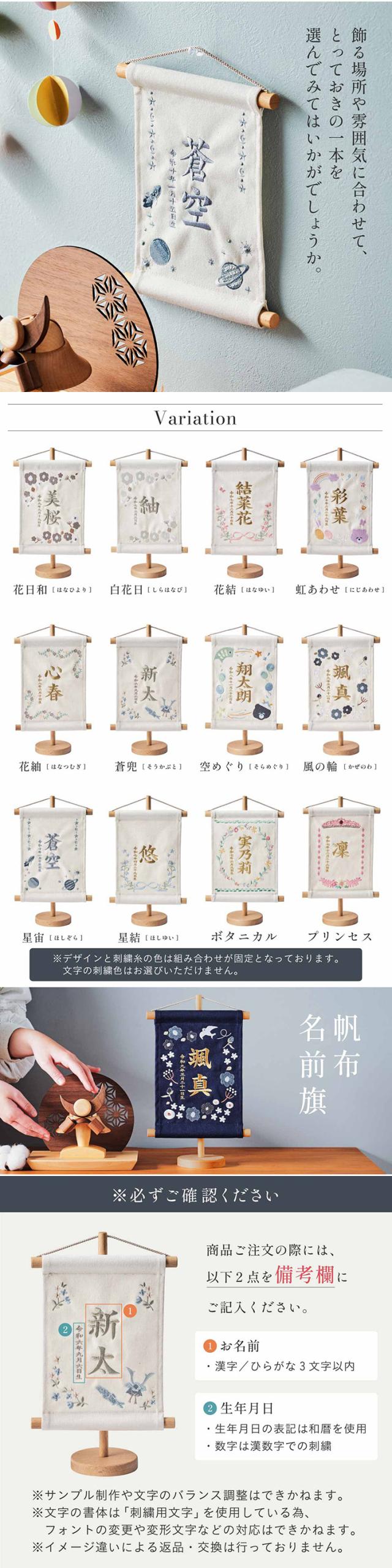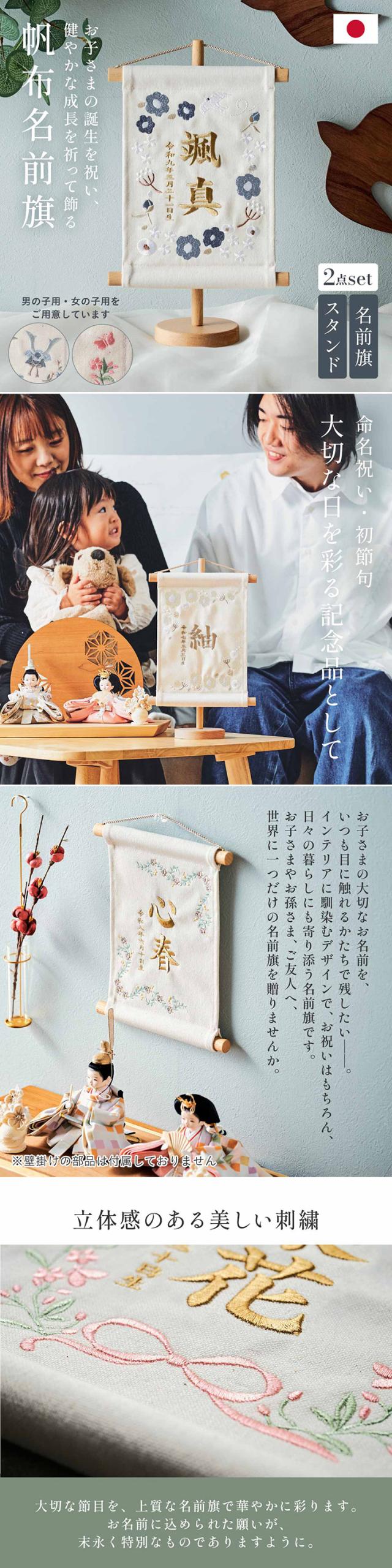 名前旗 女の子 男の子 スタンド 刺繍 節句 命名書 おしゃれ 雛祭り 初節句 五月人形 こどもの日 出産祝い 命名 誕生日 名入れ旗 生年月日入【名入れ無料】帆布 名前旗 スタンド2点セット 2色/12種類対応