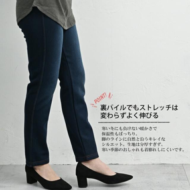 cp-aw-bt0658 体温を逃しにくいあったか裏パイルのレギンスパンツ。 大きいサイズ レディース ロング丈パンツ ロングパンツ 10分丈パンツ 裏起毛パンツ ストレートパンツ レギンスパンツ 厚手レギパン スキニーパンツ ウエストゴム 無地 綿混 ロング丈 アンクル丈 10分丈 9分丈 股下68cm ベルトループ ポケット 股上深め ハイウエスト デニム風 ウォッシュ加工 色落ち加工 ヴィンテージ加工 ユーズド加工 秋服 冬服 秋物 冬物 秋パンツ 冬パンツ 秋冬パンツ 秋冬ファッション 長パンツ 長ズボン 裏ベロア素材 あったか裏起毛 防寒対策 あたたかい あったかい 暖かい 心地良いあたたかさ あったかパンツ すっきり美脚シルエット 美脚効果 スリムシルエット よく伸びて動きやすい 伸縮性 ストレッチ 細見え 細く見える 締め付けの少ない 大人 カジュアル フェミニン オフィスカジュアル リラックス 普段着 デイリー おしゃれ きれいめ かわいい かっこいい 着こなし コーデ 定番 秋コーデ 冬コーデ ファッション 大きめ 女性 婦人用 ミセス 30代 40代 50代 2025 冬新作 秋 冬 紺 灰色 黒 ネイビー チャコール グレー ブラック M LL 3L 4L 5L 9号 13号 15号 17号 19号 cp-aw-bt0658