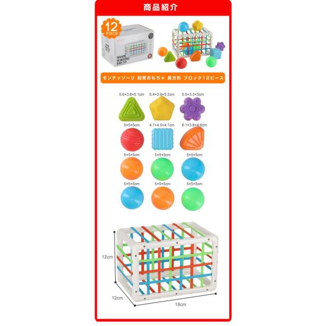 知育玩具 モンテッソーリ 知育おもちゃ 教具 おもちゃ 玩具 1歳 2歳 3歳 積み木 12ピース つみき ブロック 型はめ 出産祝い ギフト