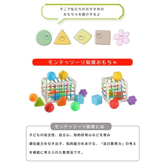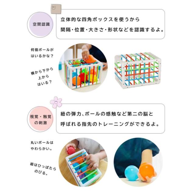 三角形や球体などの形の区別や色の区別を通して認識力の向上が狙えます。