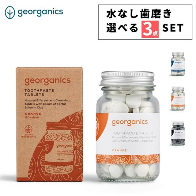 選べる3点セット ジオーガニクス georganics 歯磨きタブレット 120タブ 水なし 歯磨き トゥースペーストタブレット ミント チャコール オレンジ ナチュラル オーラルケア