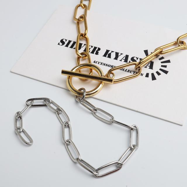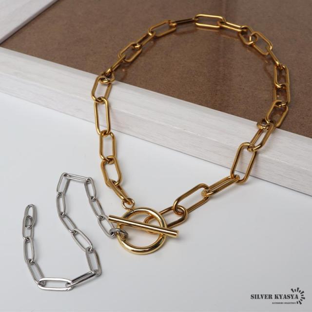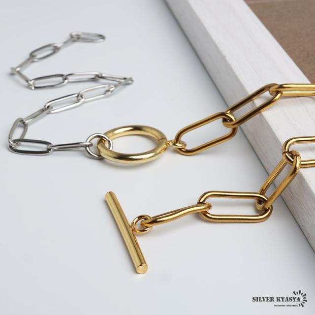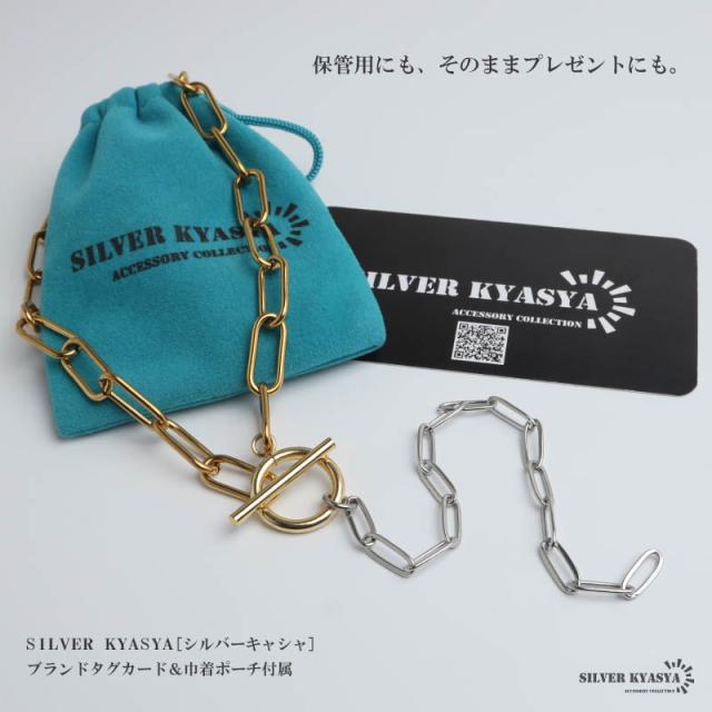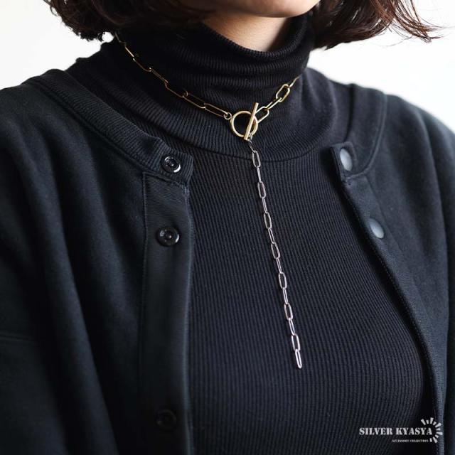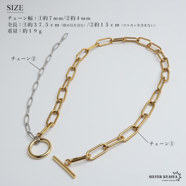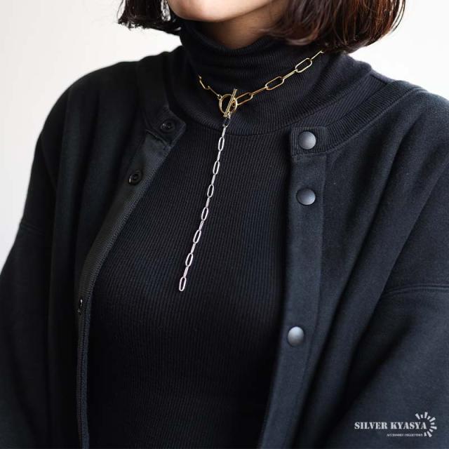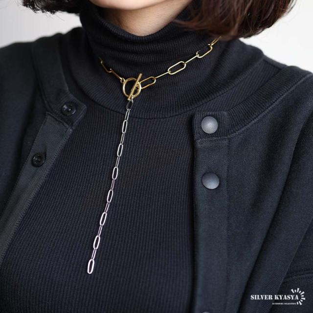 ステンレス マンテルチョーカー ロングリンクチェーン ラリエットネックレス ロングネックレス ゴールド シルバー ミックス コンビ メタリック 切り替え シンプル デザイン お洒落 存在感 つけっぱなし デイリー レディース 女性 金アレ対応