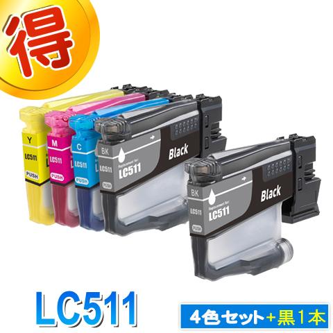 ブラザー プリンターインク LC511 4色セット+黒1本 brother 互換インク カートリッジ LC511-4PK 対応プリンター DCP-J929N-W/B MFC-J943DN/DWN DCP-J916N DCP-J529N MFC-J908N MFC-J742DN/DWN 純正インクよりお得 LC511BK LC511C LC511M LC511Y