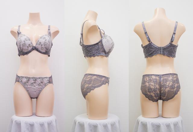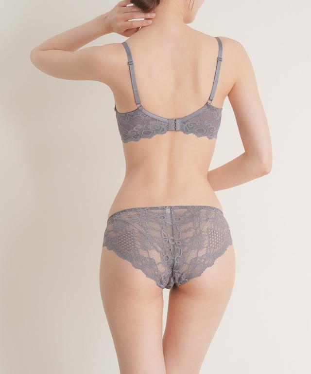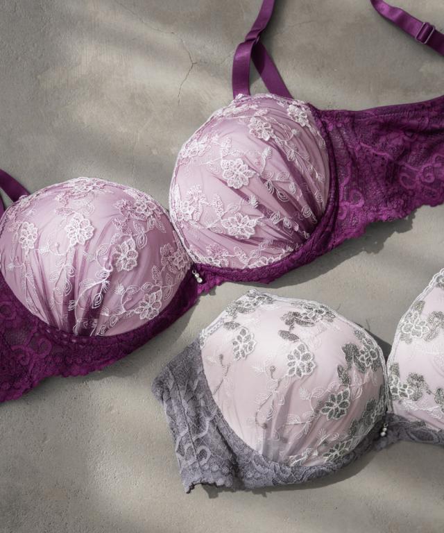 裏地無し、透け感有り、伸縮性有り 【カップタイプ】3/4カップ・モールドカップ(丸みを形成した厚みのあるカップです)、【ホックの数】3段3列、【パット付属】なし、【パットポケット】なし、【ストラップ取外し】不可、【ワイヤー】あり、※タンブル乾燥禁止