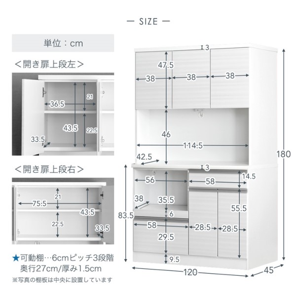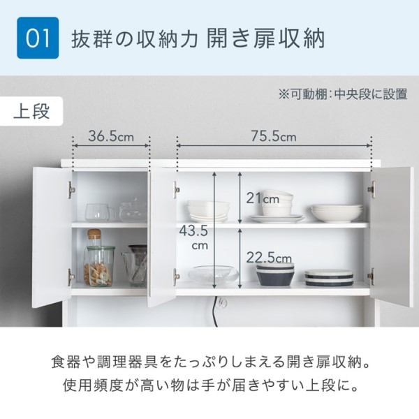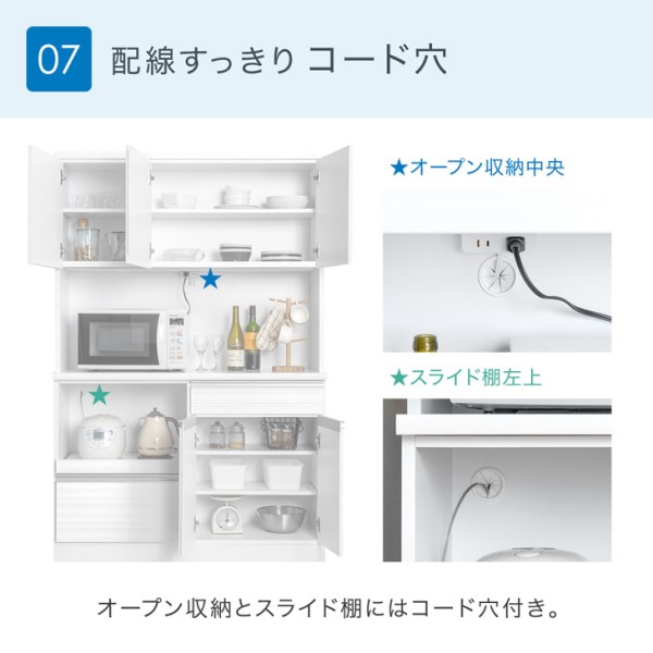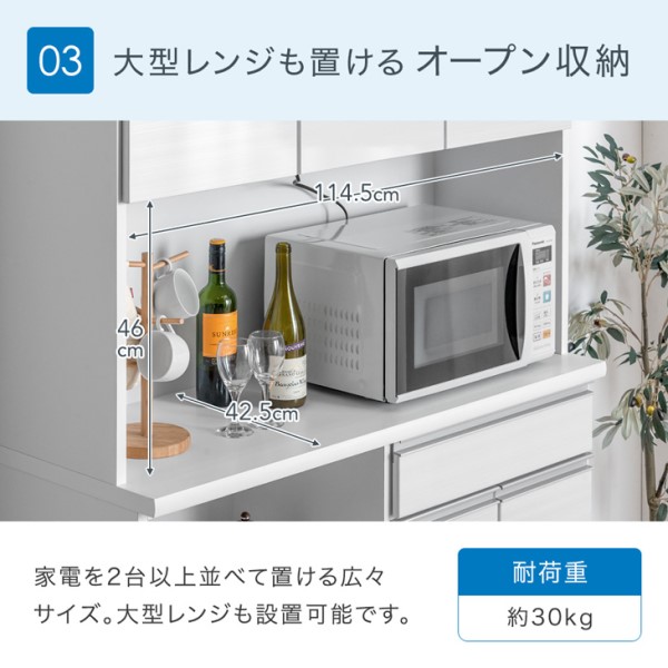 食器棚 幅120【搬入設置無料】 国産 完成品 MOISS コンセント付き 大型レンジ対応 キッチンボード レンジ台 レンジボード キッチンラック キッチン収納 スライド 棚 組み立て不要 日本製 木製 ホワイト 北欧 おしゃれ 【超大型】【後払/時間指定NG】【商品番号:33010167】