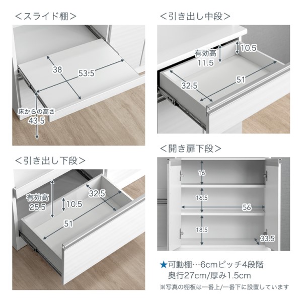 オープン収納・スライド棚天板:ポリ化粧繊維板