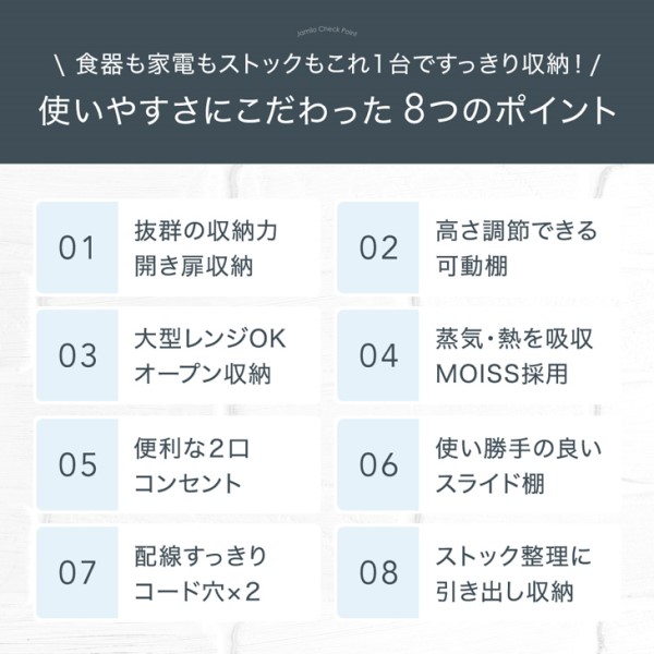 国産 完成品 MOISS コンセント付き 大型レンジ対応 キッチンボード レンジ台 レンジボード キッチンラック キッチン収納 スライド 棚 組み立て不要 日本製 木製 ホワイト 北欧 おしゃれ 【超大型】