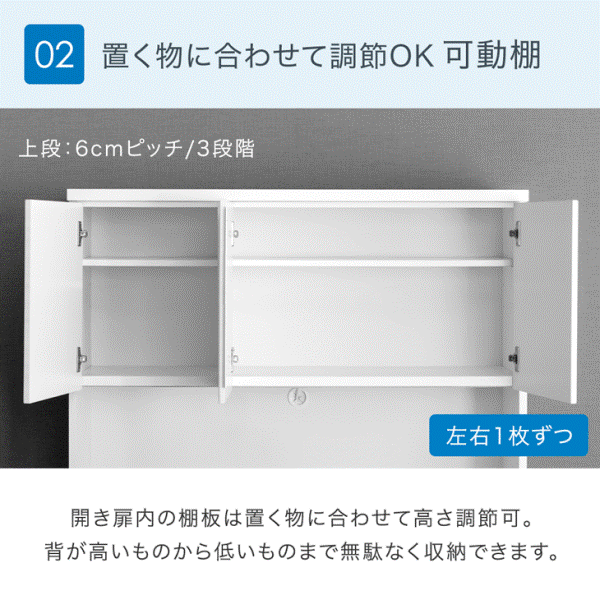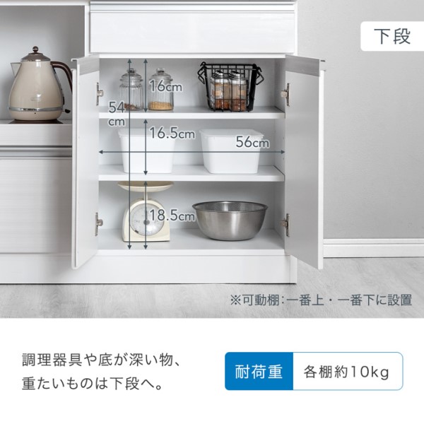 開き扉収納:可動棚…約10kg、最下部…約10kg
