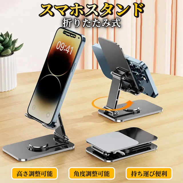 スマホスタンド 折りたたみ 卓上 軽量 【ハレゾラTBP公式店】スマホホルダー スタンド 折り畳み式 充電しながらOK コンパクト 高さ調整 角度調整 iPhone Android対応 テレワーク 動画視聴 持ち運び便利